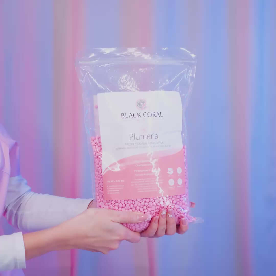 - Pink color, Plumeria Blossom Fragrance: Pink hue with Plumeria Blossom scent, enhancing the waxing experience.